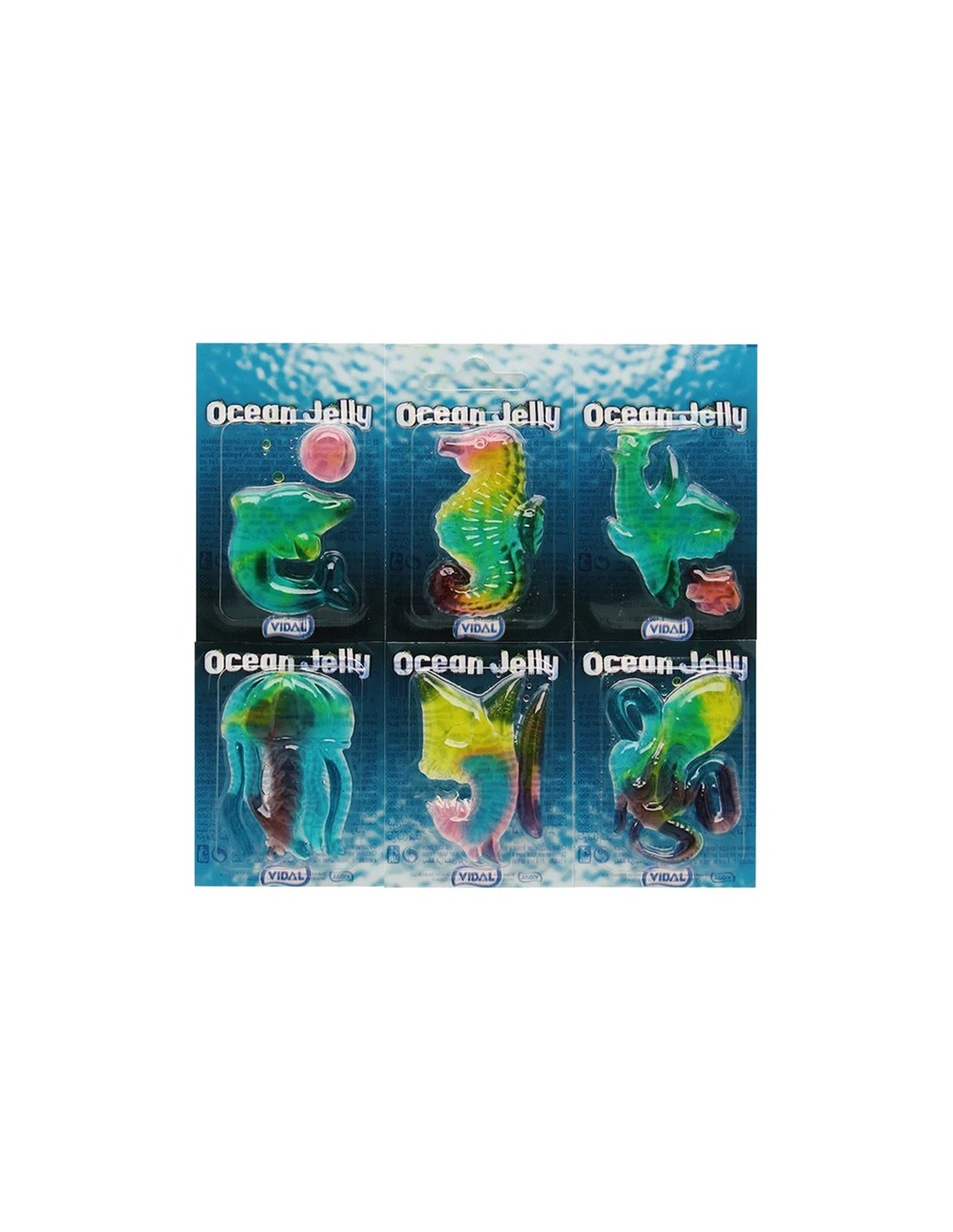 Dive into the fruity depths of Vidal Ocean Jelly, featuring six fish-shaped gummies perfect for sea-themed parties and fun snacks. A delicious, playful treat.
