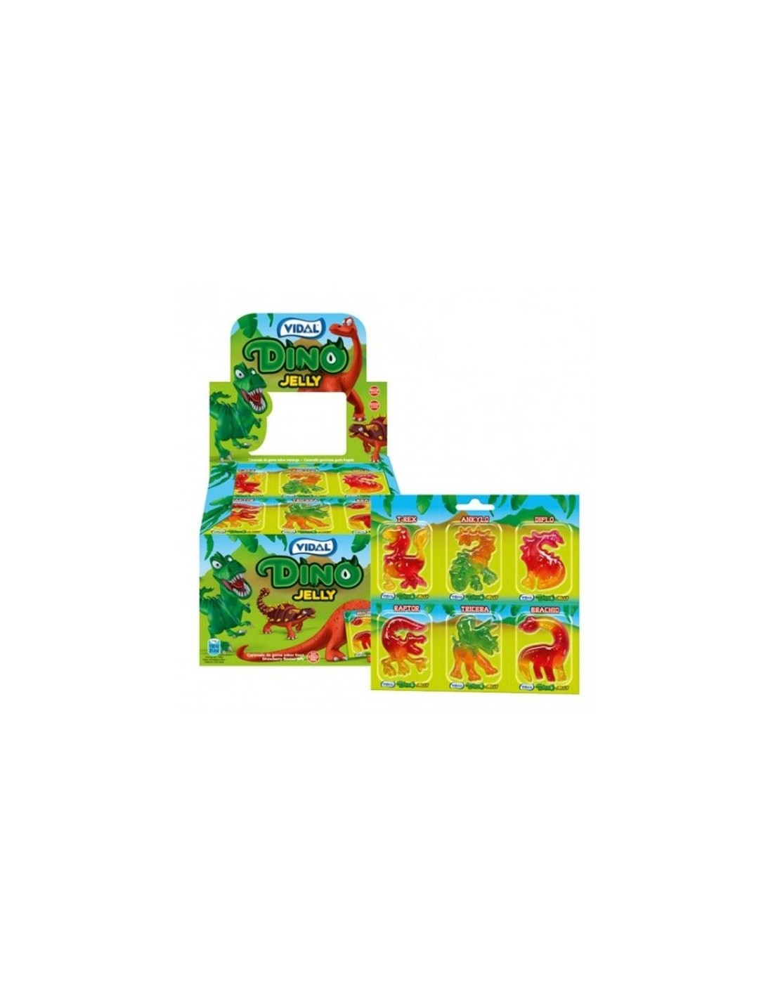 Enjoy the cheerful flavours of Vidal Dino Jelly in a handy 11 gram pack. These cute candies have the recognisable shape of dinosaurs and are filled with a delicious, fruity flavour that makes every bite an adventure. With their soft texture and vibrant colours, Vidal Dino Jelly are perfect for children and candy lovers of all ages. Ideal for on the go, as a treat during a movie or to share with friends. Let yourself be surprised by the tasty experience of these fun dino candies!