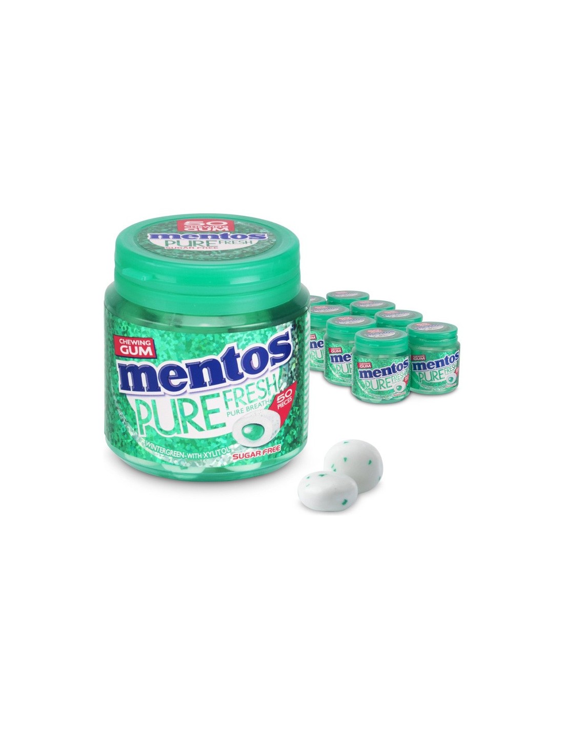 Pure Fresh Wintergreen, 50 refreshing chewing gums with a liquid center for an intense sensation of freshness in your mouth. Comes in a convenient jar for home, on the go, or at work. Sugar-free for worry-free enjoyment.