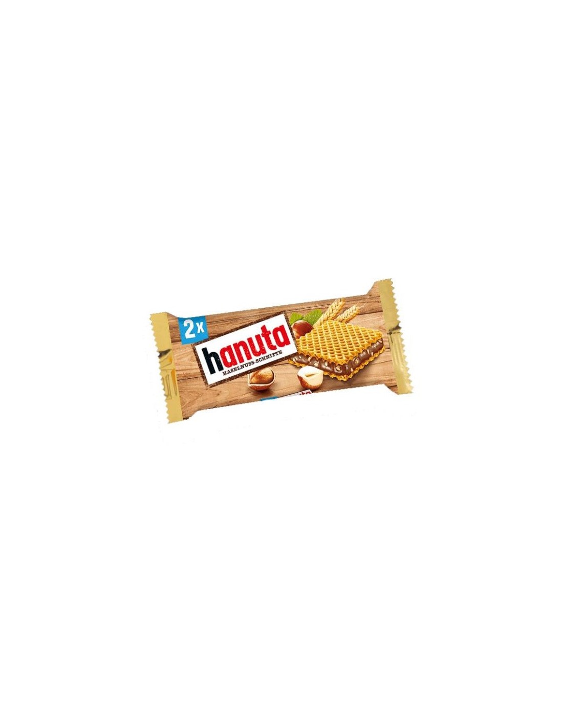 Hanuta Haselnuss is a German wafer snack featuring a rich, sweet hazelnut-chocolate cream and pieces of roasted hazelnuts sandwiched between two crisp wheat waffles. The snack provides a unique blend of nutty, sweet, and tart flavors from the freshly roasted hazelnuts, cocoa, and crunchy wafers.