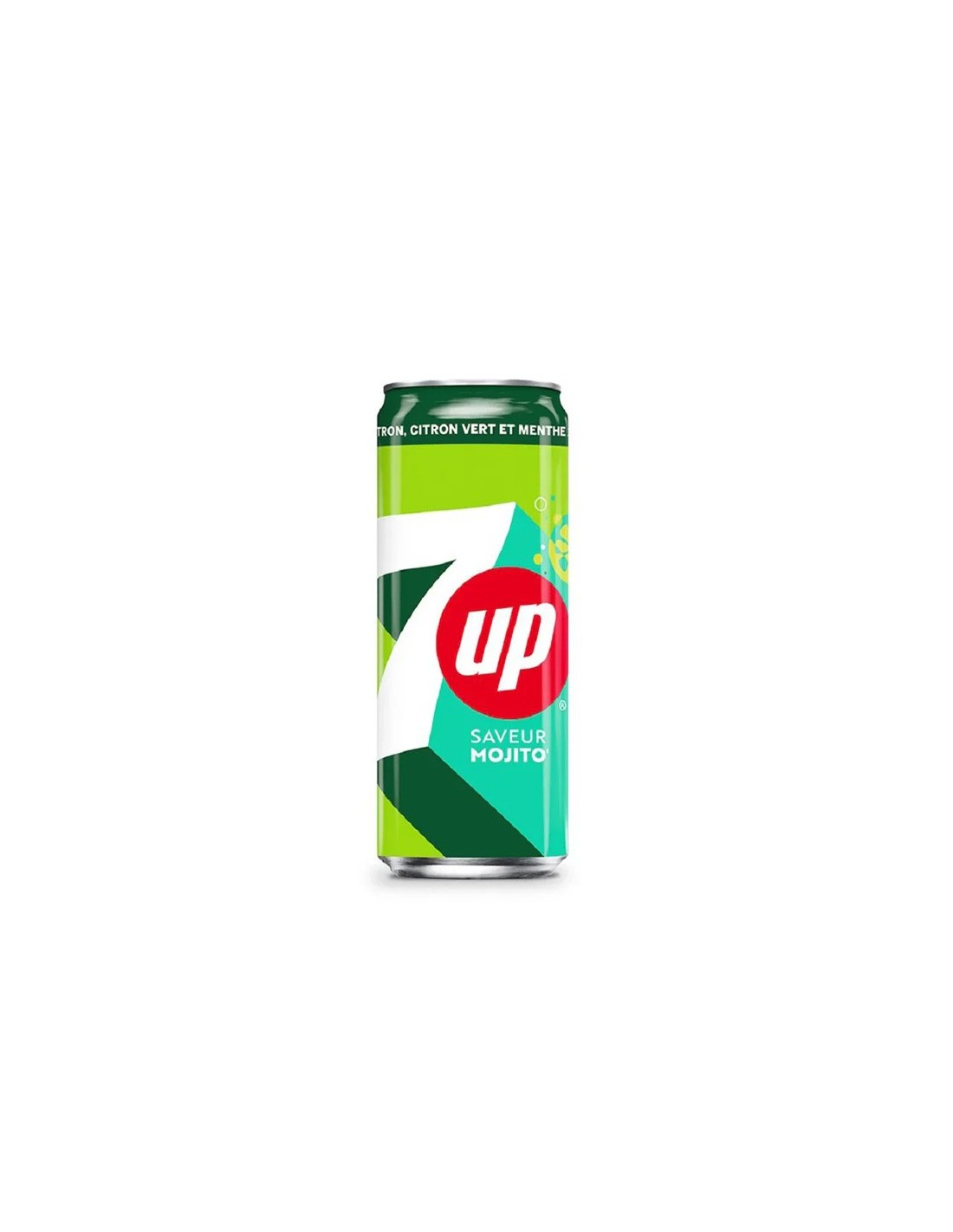 7Up Mojito apporte le goût rafraîchissant d'un cocktail mojito classique à une boisson gazeuse sans alcool, mélangeant la saveur citron-lime croquante du 7Up avec une touche fraîche de menthe.