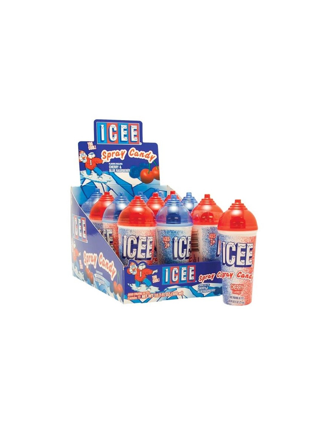 Les deux saveurs sont cerise et framboise bleue. Ces bonbons en spray amusants sont basés sur la célèbre boisson ICEE que l'on trouve dans les cinémas, les centres commerciaux et la plupart des points de vente.