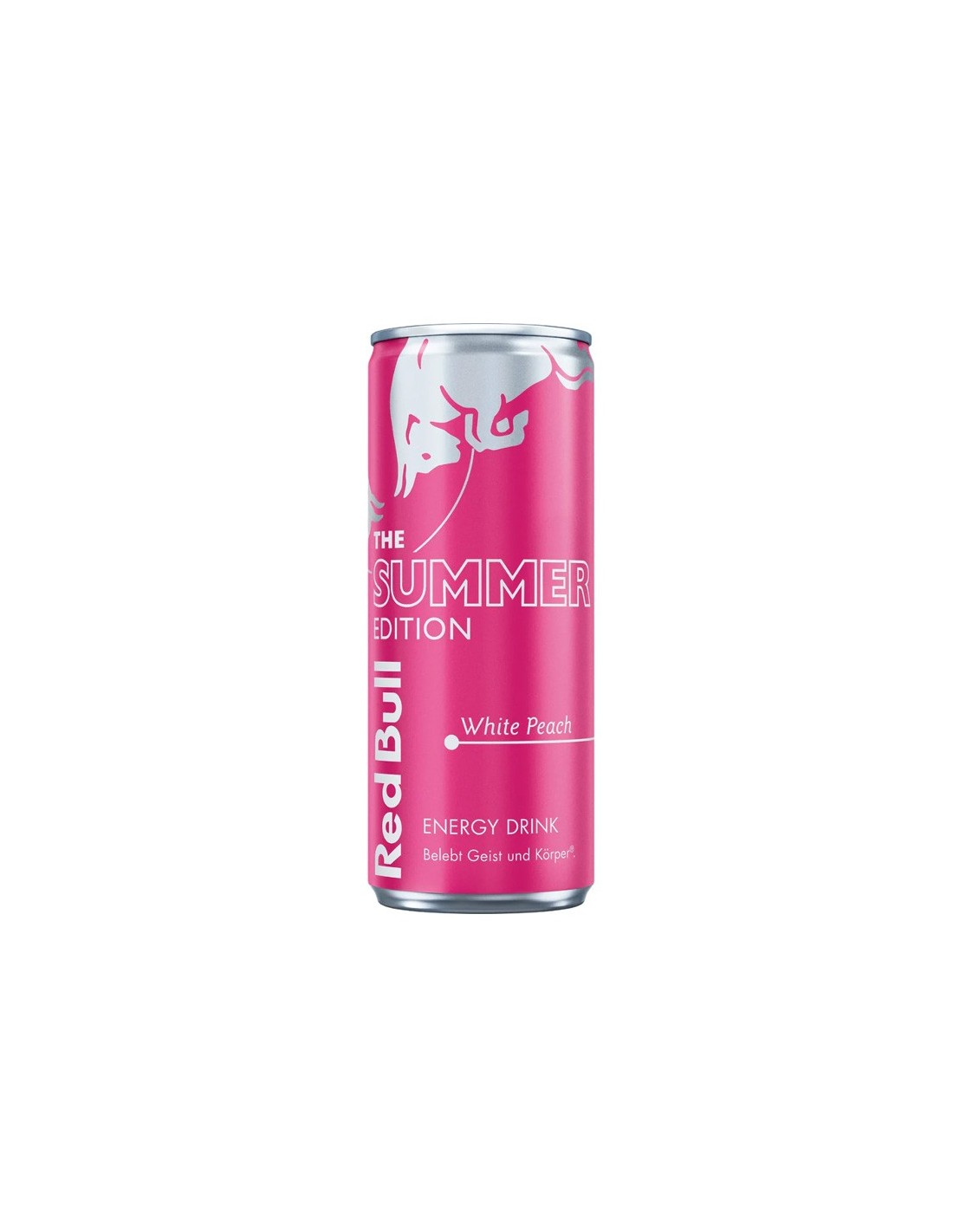 Red Bull Summer Edition White Peach is een energiedrank met een zomerse witte perziksmaak. Deze speciale editie combineert de zoete, fruitige smaak van witte perzik met de kenmerkende stimulerende ingrediënten van Red Bull, zoals cafeïne, taurine en B-vitamines.
