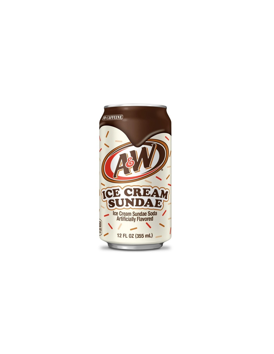 De A&W Ice Cream Sundae 355 ml is een koolzuurhoudende drank die de smaken van een klassieke ijscoupe combineert met tonen van romige vanille en rijke chocolade. Het is een cafeïnevrije, limited edition frisdrank, geïnspireerd op de nostalgische smaak van een A&W-drankje.