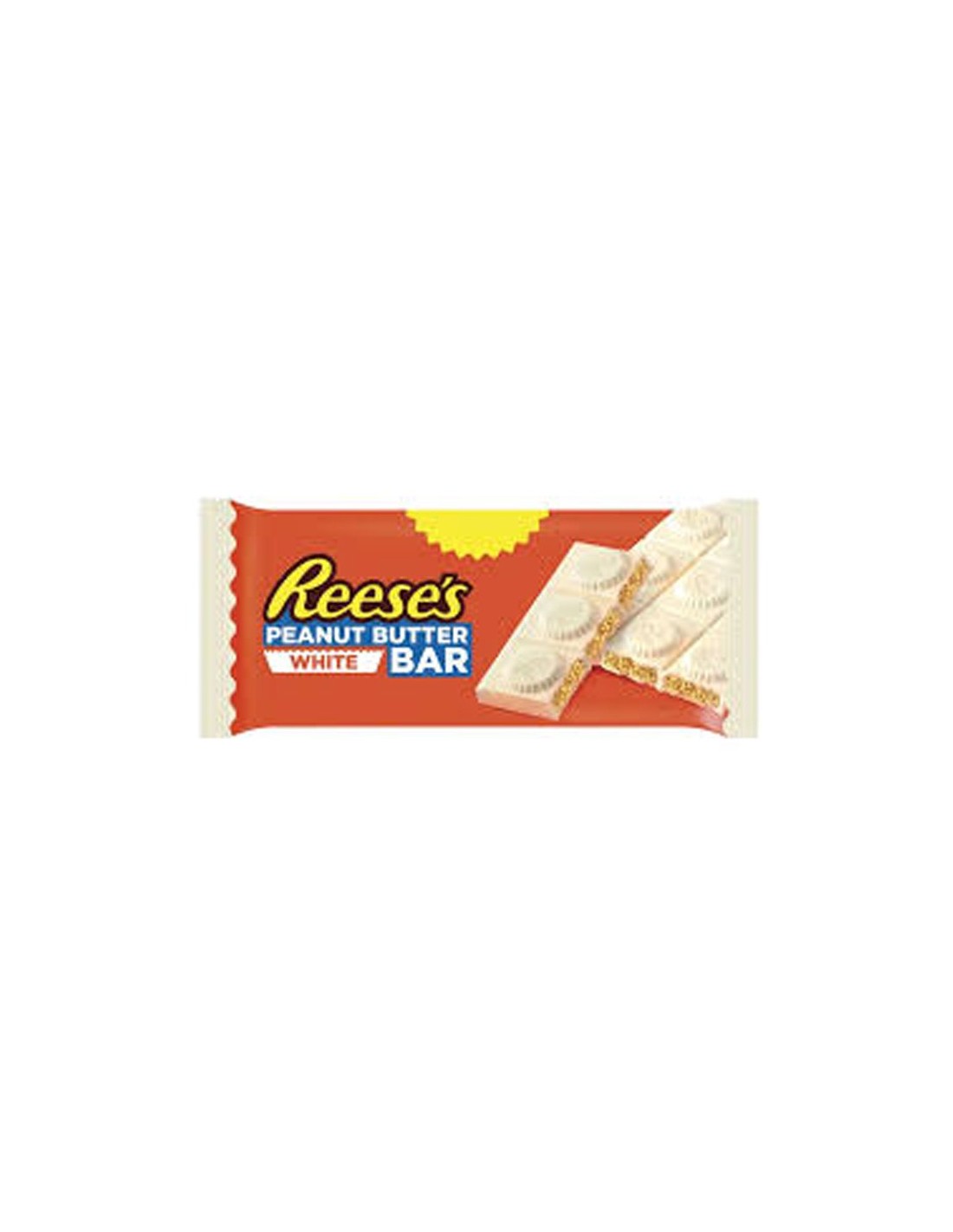 De Reese's Peanut Butter Bar White 90g is een 90-grams reep met een vulling van de bekende, romige pindakaas van Reese's, omhuld met een laag van witte chocoladesmaak. De reep combineert de kenmerkende zoete en zoutige smaken van Reese's, verpakt in een deelbare repen-formaat.