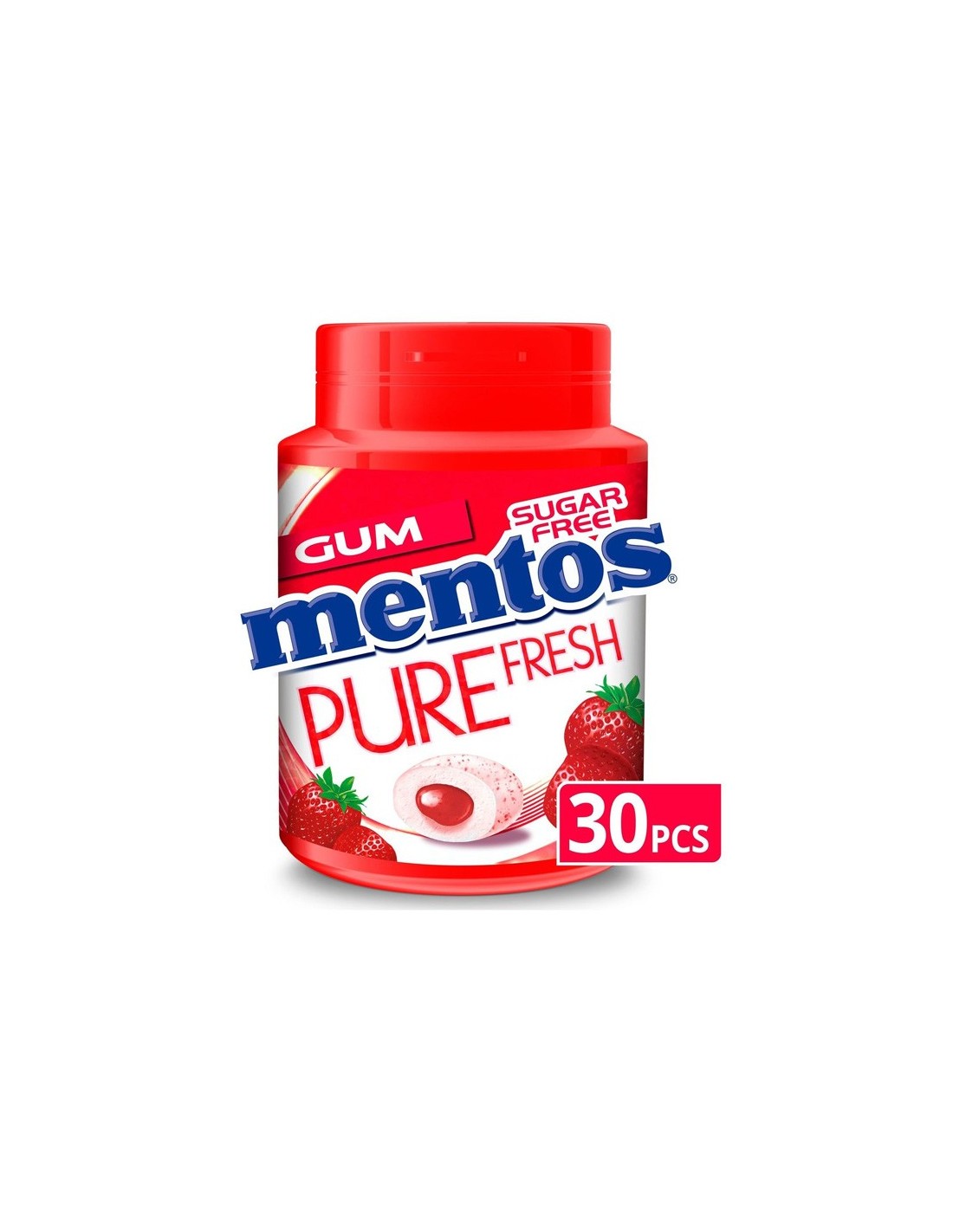Mentos Chewing Gum Pure Fresh Aardbeiensmaak Sugar Free 30 Stuks 60 g