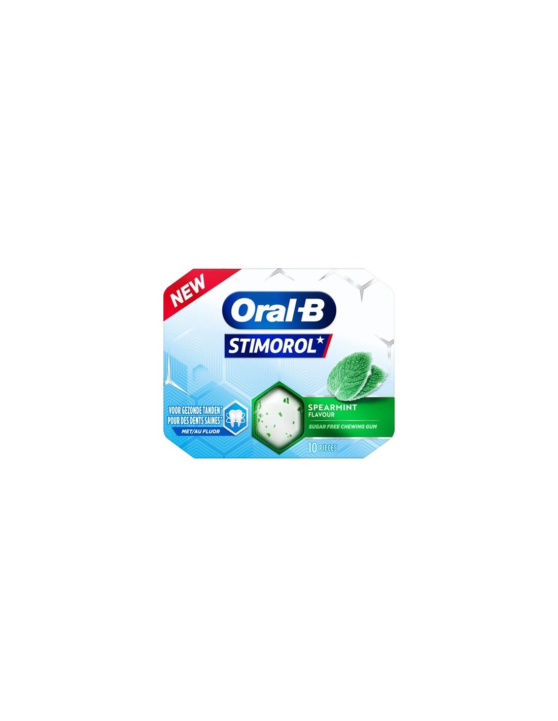 Stimorol Oral-B Spearmint is een suikervrije kauwgom met fluor. De tandkundige expertise van Oral-B en de frisheid van Stimorol komen samen in deze unieke kauwgom. Zeshoekige vorm Verfrissend en versterkend Ideale ondverzorging voor onderweg