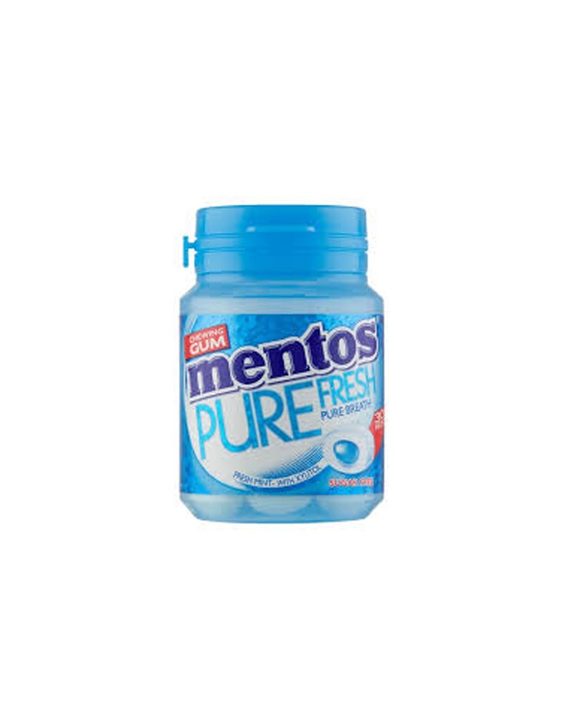 Mentos Gum Pure Fresh Fresh Mint. Deze frisse kauwgum heeft een vloeibare kern voor een intense en zuivere frisheid. In een grote pot, handig voor thuis, onderweg of op het werk. Suikervrij, om zorgeloos te kunnen genieten.