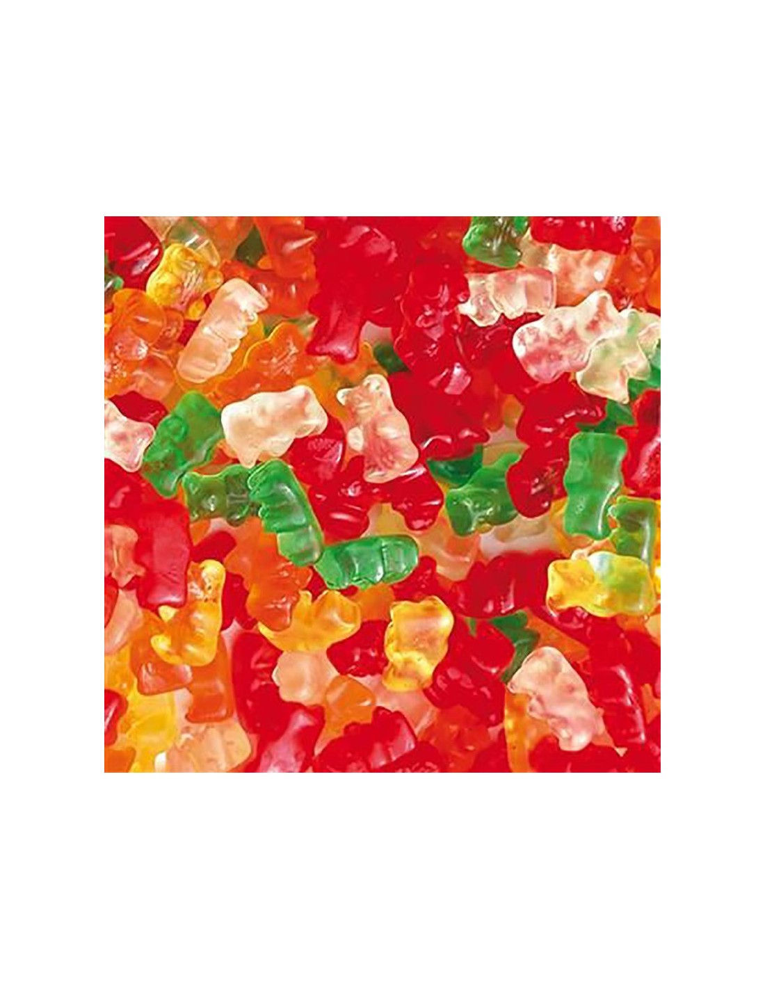 Zoetzure elastische gom op basis van suiker en geleesmiddel, in 7 verschillende kleuren en smaken.