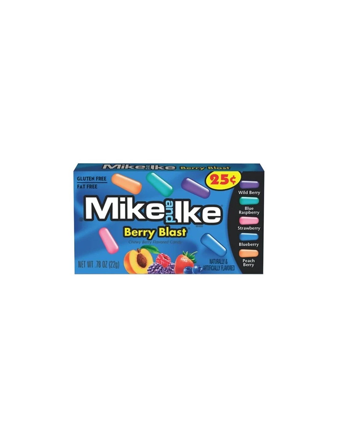 Mike en Ike Berry Blast levert vijf heerlijke smaken, waaronder Wild Berry, Blue Raspberry, Strawberry, Blueberry en Peach Berry.