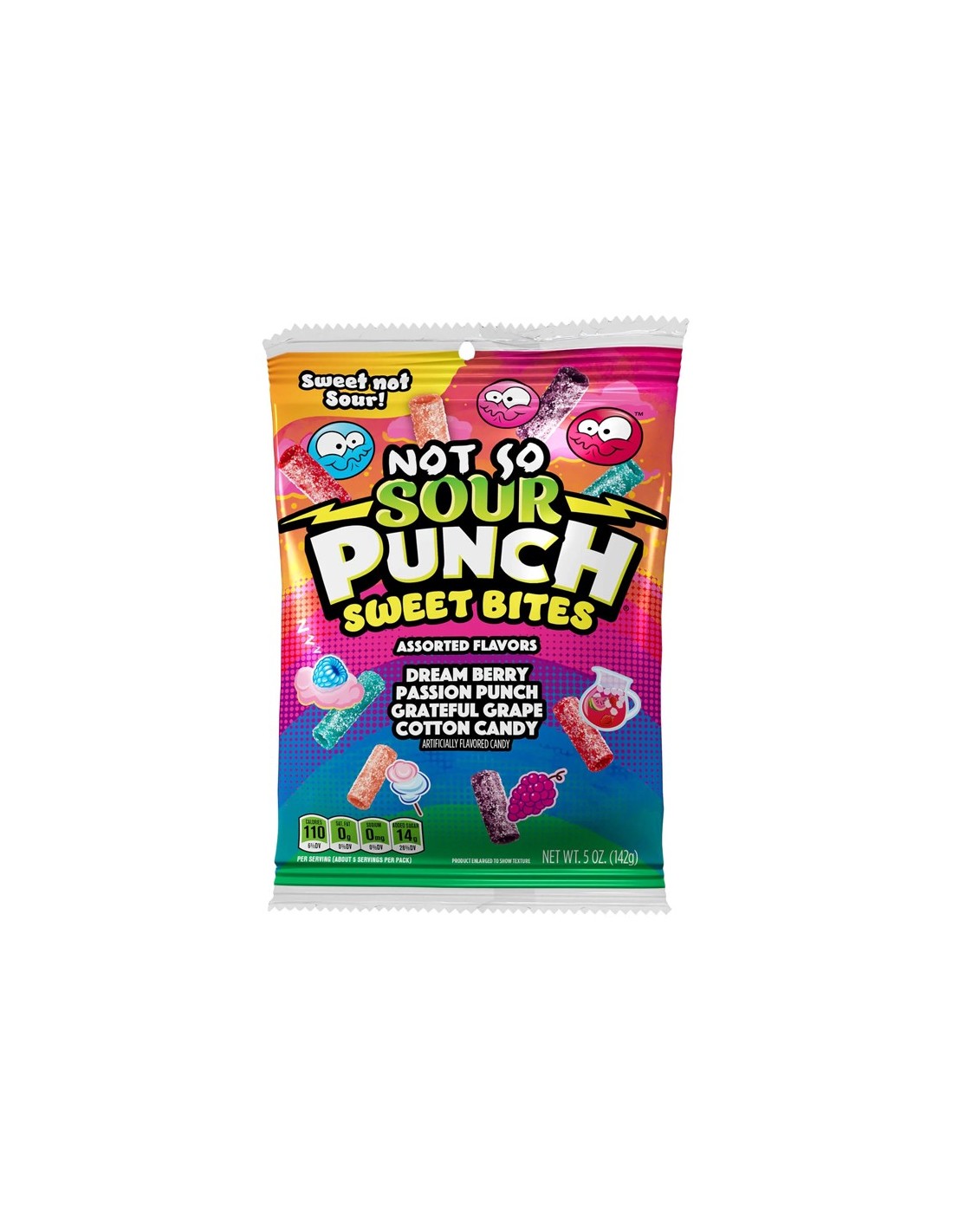 Verfraai je leven met SOUR PUNCH Sweet Bites! Deze hapklare, taaie snoepjes bieden alle zoetheid zonder het zuur. Met vier heerlijk unieke snoepsmaken laat Sweet Bites je zeggen: "Yasssss"! Dus waar wacht je op? Stop wat in je mond, leun achterover en geniet van de lekkere goedheid!