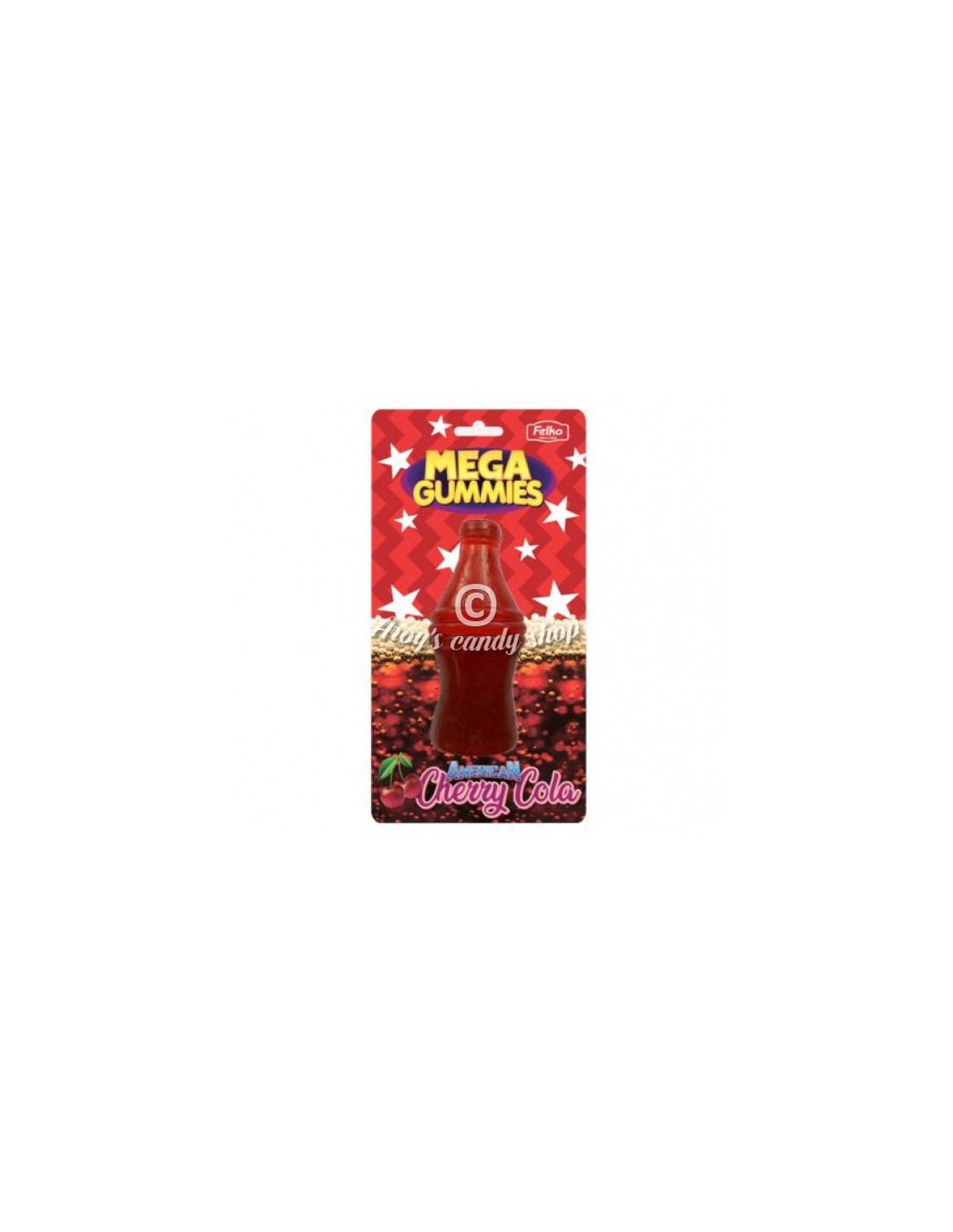 De Mega Gummies American Cherry Cola (XL) is een gigantische, smakelijke traktatie in de vorm van een verfrissende cherry cola fles. Deze extra grote gummi biedt een heerlijke combinatie van kersensmaak en cola-aroma, perfect voor liefhebbers van zoet en fruitig snoep. Ideaal voor feestjes, als cadeau of gewoon als leuke en heerlijke snack.
