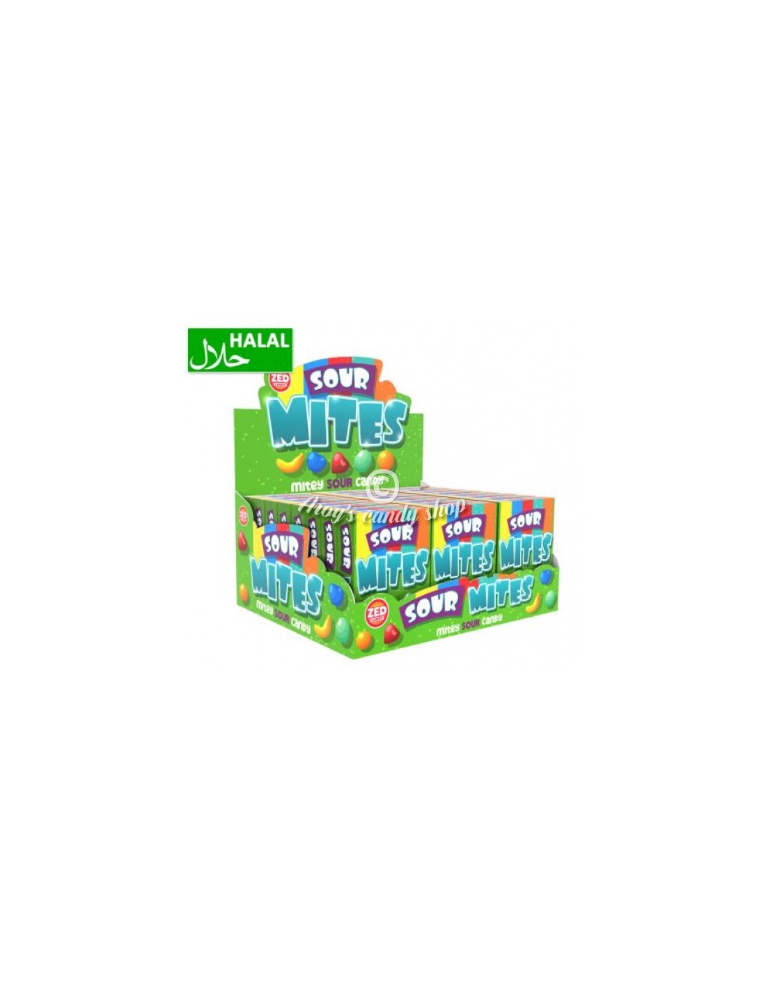 Zed Sour Mites Pocket Box 50 gram bevat kleine, intens zure snoepjes die vanaf de eerste hap barsten van de smaak. Dankzij de handige doos zijn ze makkelijk mee te nemen, te delen met vrienden of te genieten als tussendoortje wanneer je trek hebt in iets zuurs.