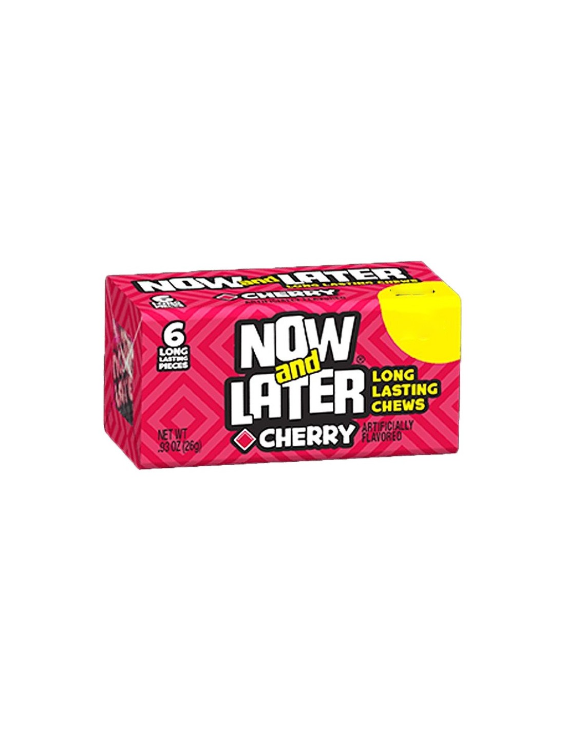 Een zure draai aan de originele kersensmaak Now & Later in een miniverpakking van zes stuks - elke kauw is individueel verpakt en barst van de fruitige smaak. Het snoepje begint hard maar verandert korte tijd later snel in een taffy-achtige kauwsnack, vandaar de slogan "Hard 'N Fruity Now and Soft 'N Chewy Later"